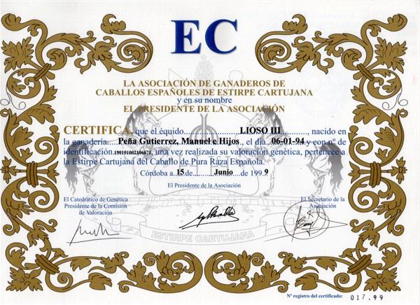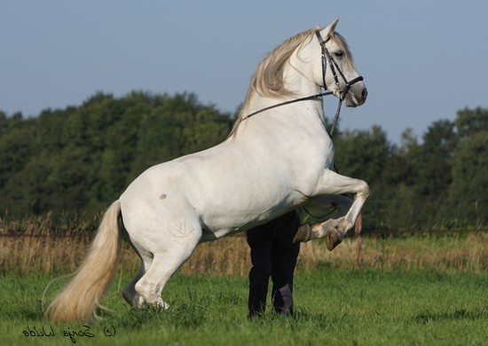 Von Poseido VI aus der Liosa 1981 von Ingenioso 1975. Reiner Cartujano-Schimmel mit außergewöhnlichen Gängen, die er sicher vererbt hat. Lioso III ist 2021 mit 27 Jahren gestorben